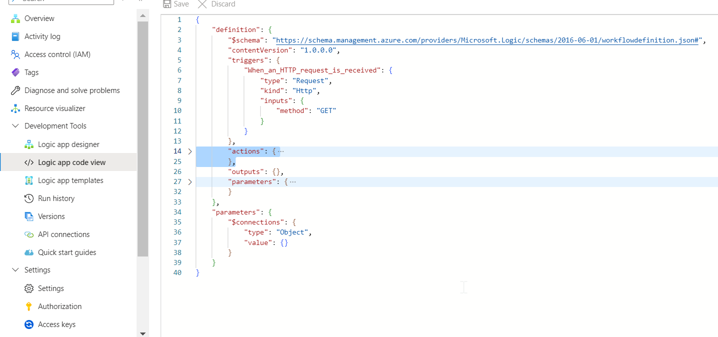 - Create a new Logic App in the target tenant and paste the definition.